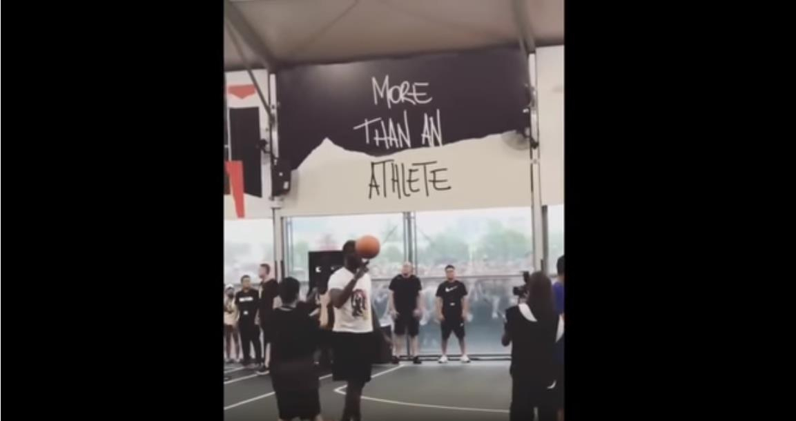 LeBron James shows his basketball skills during his China tour in Shanghai on August 24. /Screenshot from YouTube