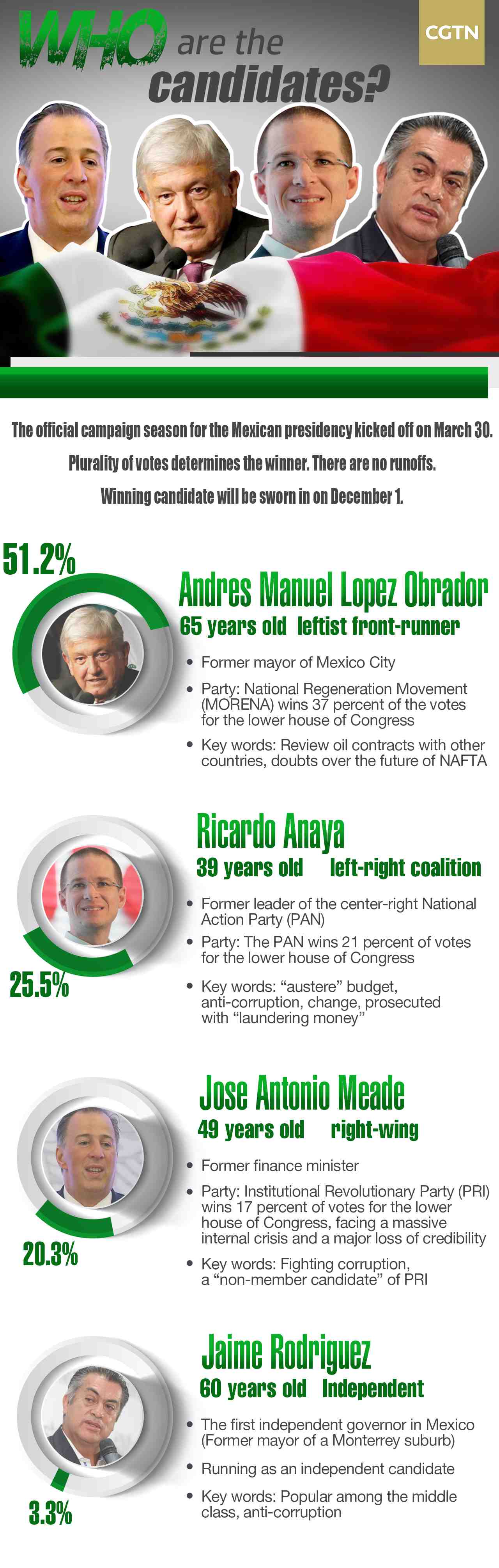 The upcoming 2018 Mexican election will decide the successor to President Enrique Pena Nieto on July 1.