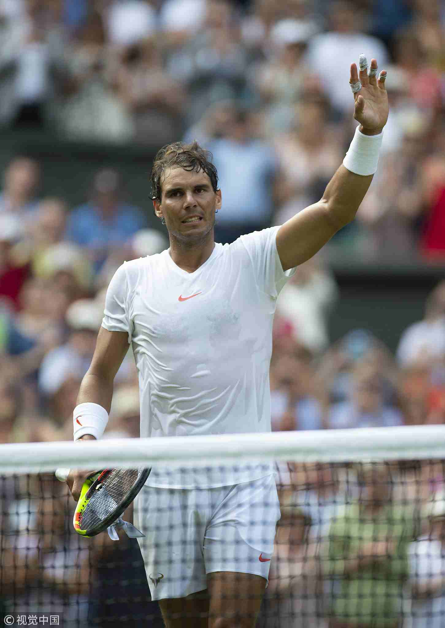 Rafael Nadal of Spain during his second round match against Mikhail Kukushkin of Kazakhstan on day four of the Wimbledon Lawn Tennis Championships at the All England Lawn Tennis and Croquet Club, July 5, 2018 in London, England. /VCG Photo