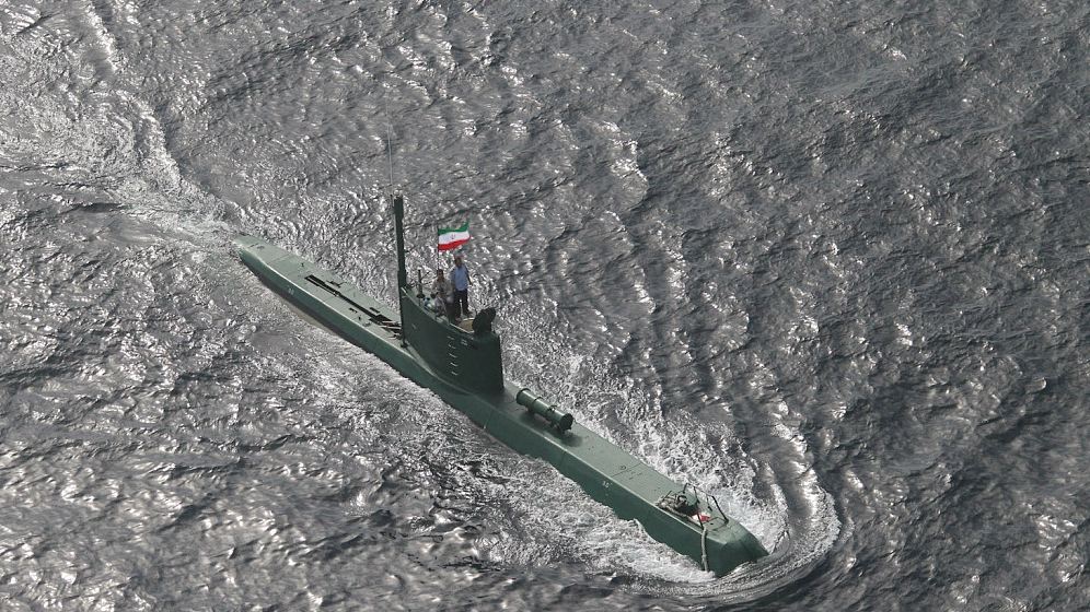 An Iranian Navy submarine sails during an Iranian navy drill in the Gulf of Oman, February 22, 2019. /VCG Photo