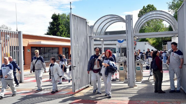 Fiat Chrysler Automobiles (FCA) workers exit the Mirafiori plant in Turin, Italy, May 13, 2019. /Reuters Photo