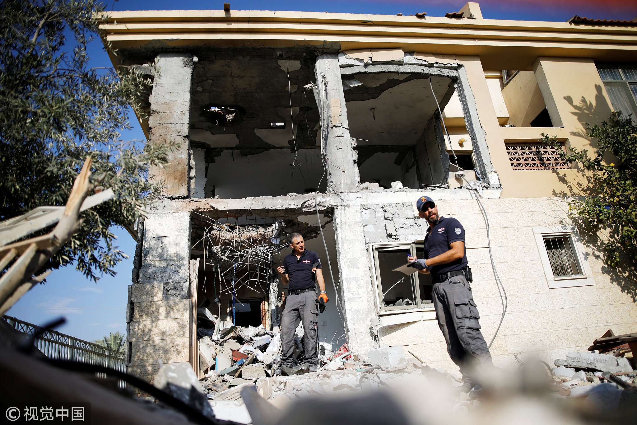 Israeli sappers work on a house that the Israeli military said was hit by a rocket fired from the Gaza Strip, October 17, 2018. /VCG Photo
