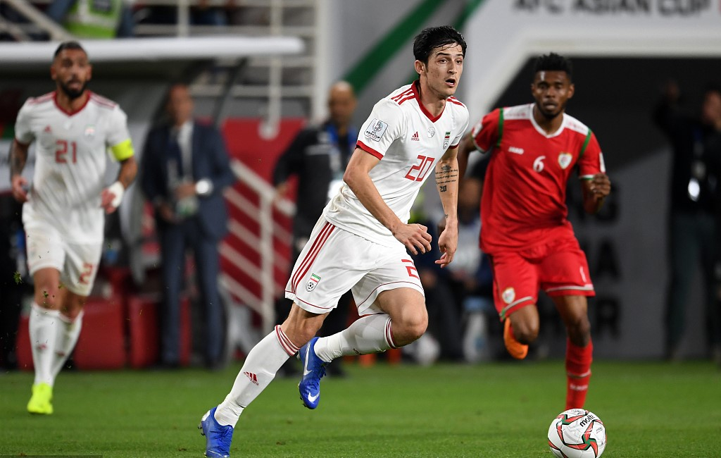 Sardar Azmoun #20 of Iran in the match against Oman of the 2019 AFC Asian Cup, January 20, 2019. /VCG Photo