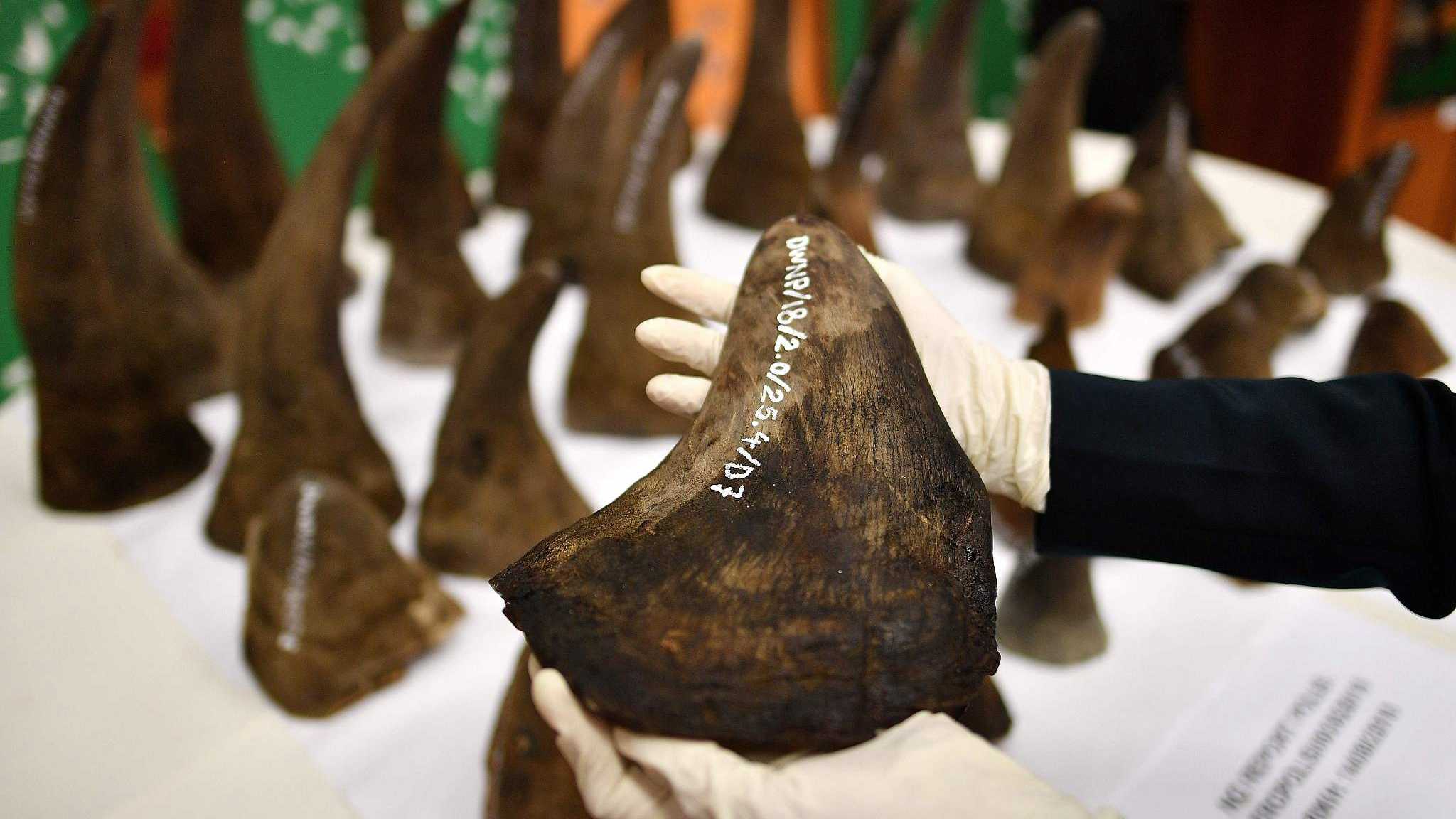 Malaysia’s wildlife department has seized 50 rhino horns worth nearly 12 million US dollars bound for Vietnam, “the biggest ever in (Malaysia’s) history in terms of the number of horns and value”, officials said on Monday. /VCG Photo