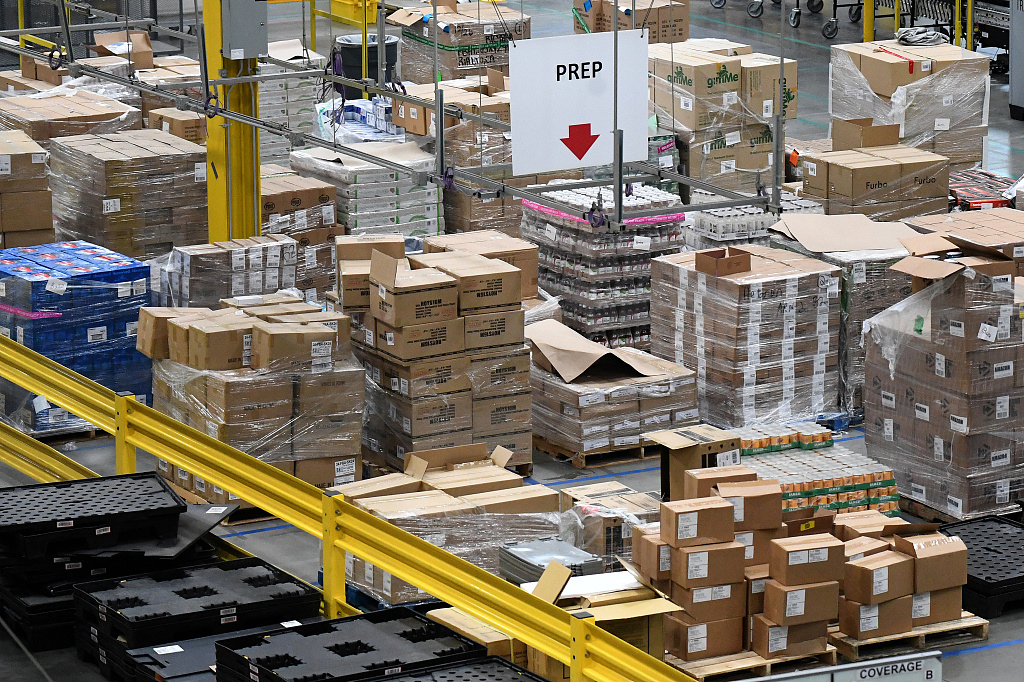 The product prep area of the Amazon fulfillment center is seen in Baltimore, Maryland, U.S., April 30, 2019. /VCG Photo