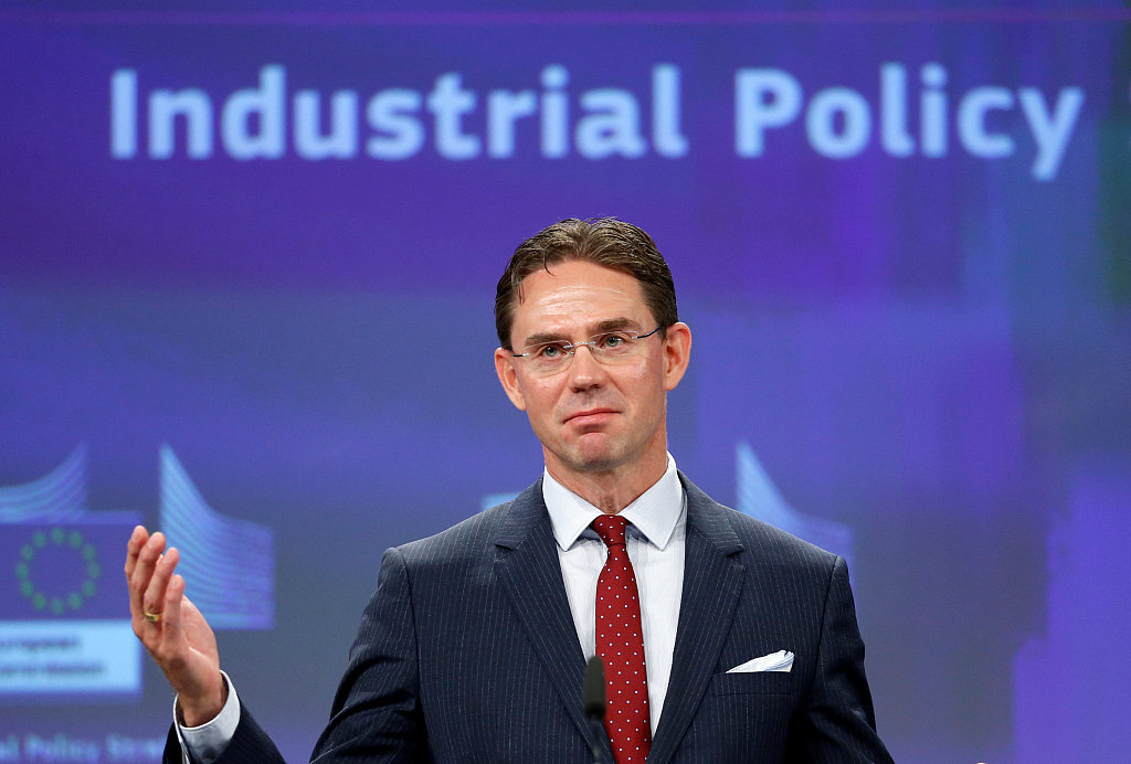 European Commission Vice-President for Jobs, Growth, Investment and Competitiveness Jyrki Katainen speaks at a news conference on the Industrial policy package in Brussels, Belgium, September 18, 2017. /VCG Photo.