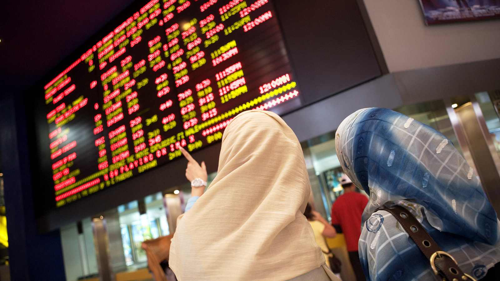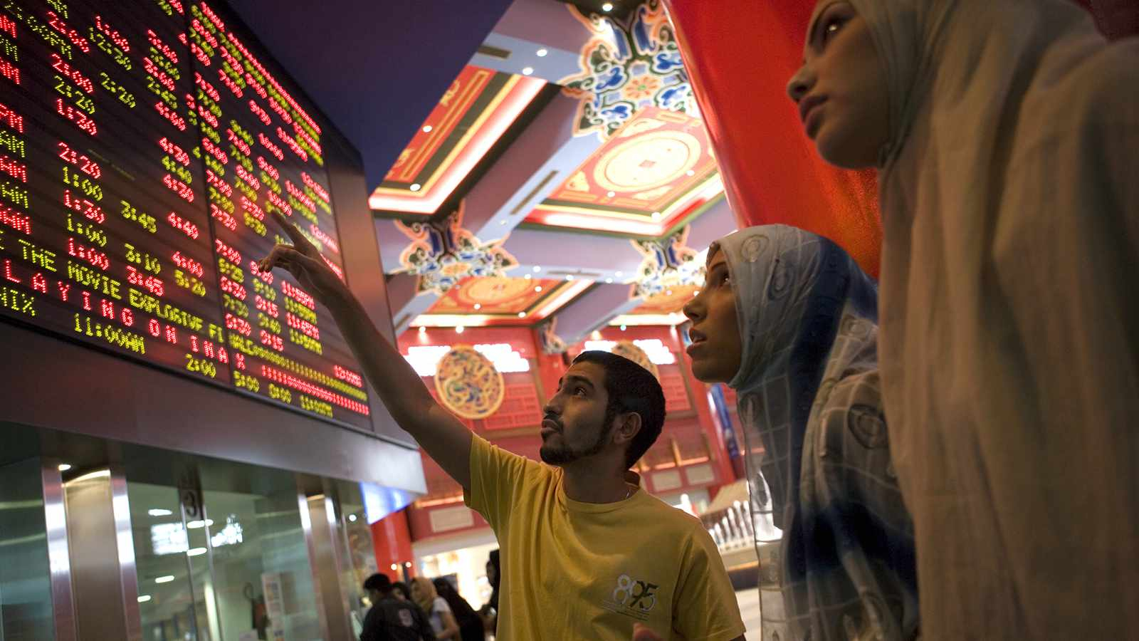 Two women checked the cinema schedule board in Dubai. /VCG Photo