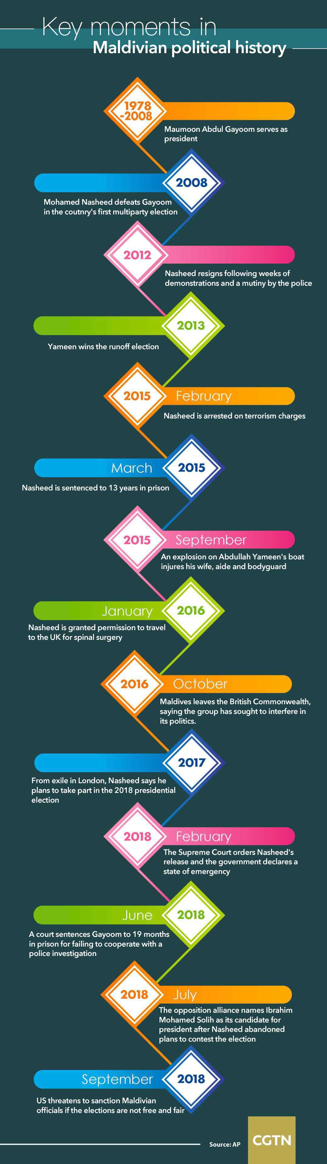 Key moments in Maldivian political history. /CGTN's Xu Qianyun