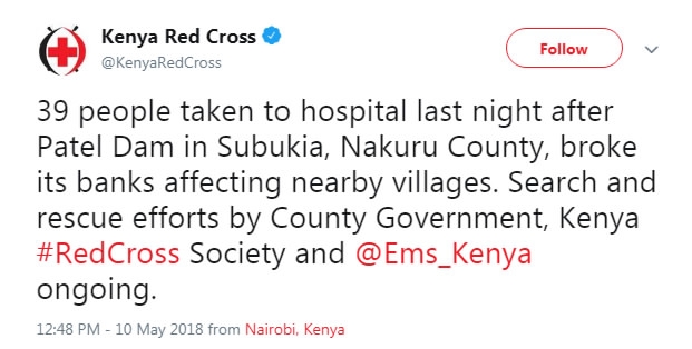 According to Kenya Red Cross, at least 39 people have been rescued and dozens remain unaccounted for.