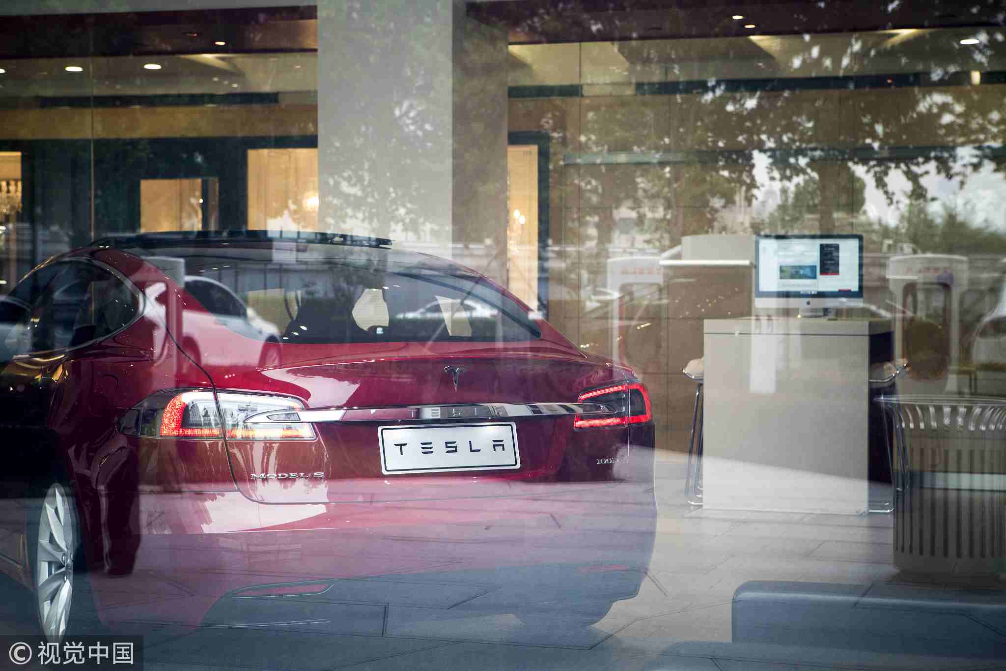 A Tesla Inc. Model S electric vehicle sits on display at the company's showroom in Beijing, China on Saturday, July 7, 2018. /VCG Photo.