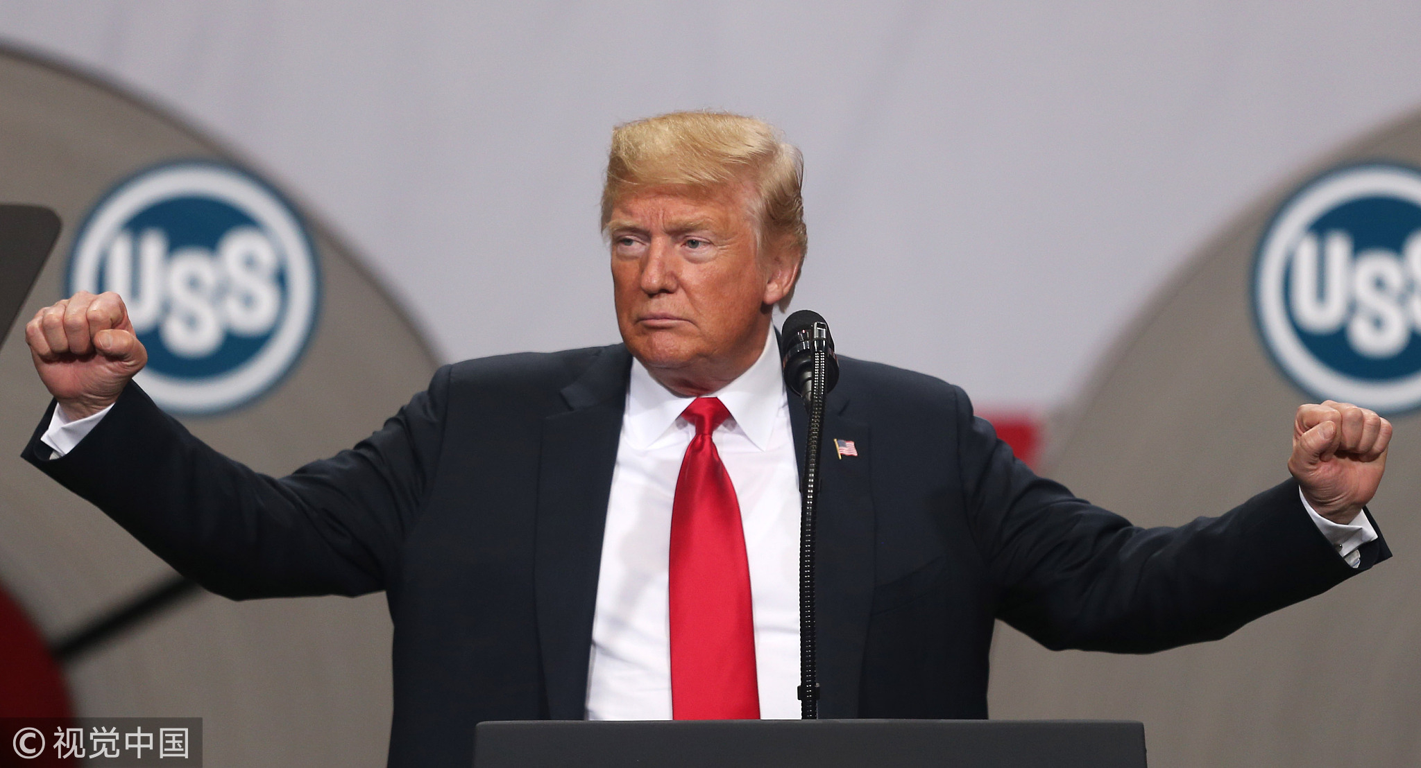 Donald Trump speaks to the crowd after touring the United States Steel Granite City Works in Granite City, Illinois, the US on July 26, 2018. /VCG Photo.