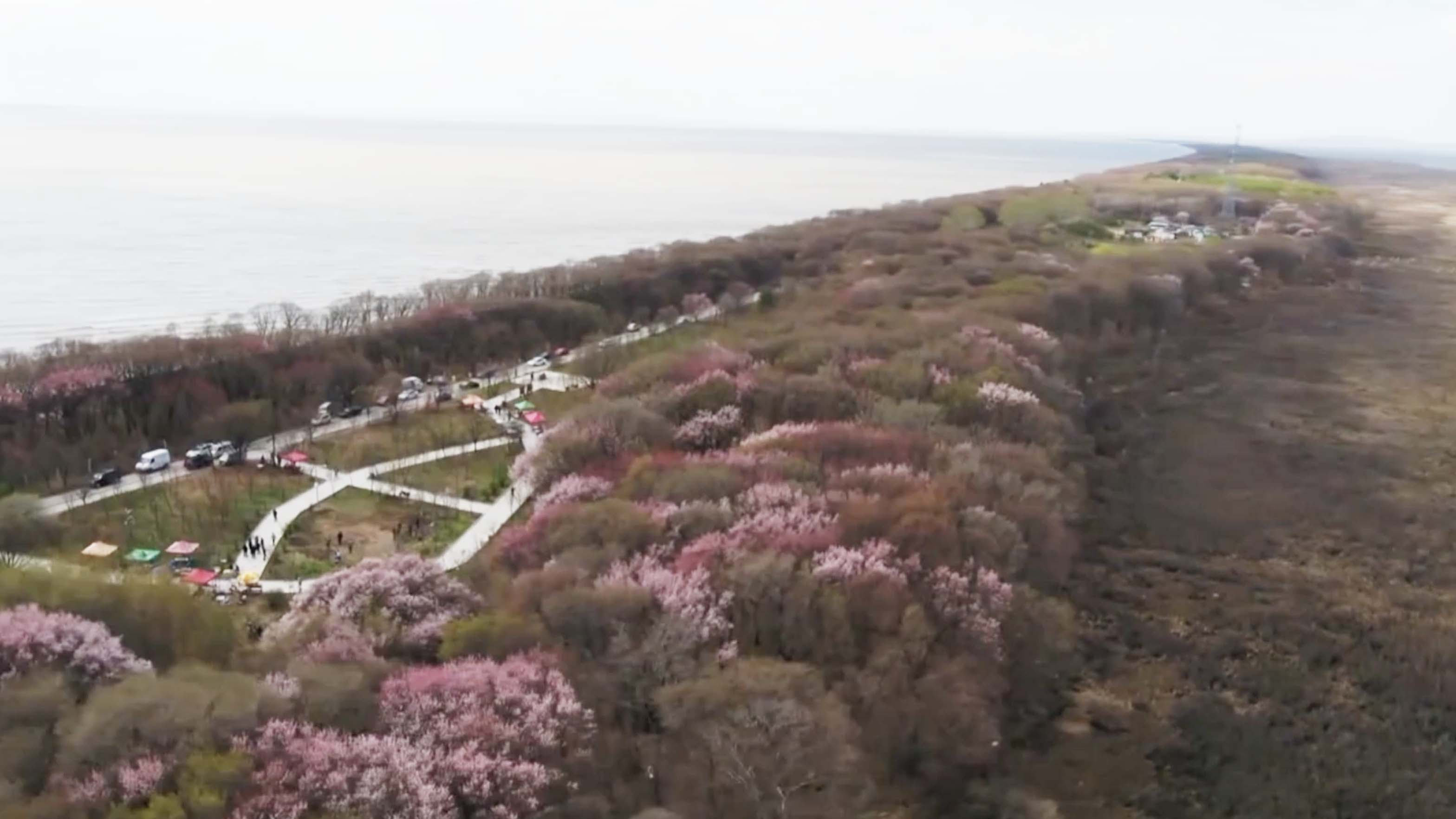 Stunning apricot flowers blossom along the east bank of the Xingkai Lake at the China-Russia border at the beginning of Summer.