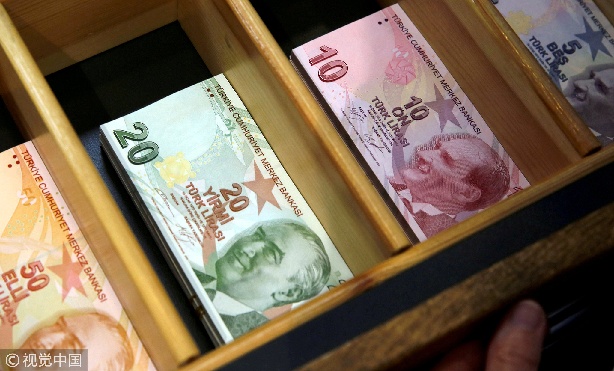 Turkish lira banknotes are pictured at a currency exchange office in Istanbul, Turkey, August 13, 2018. /VCG Photo