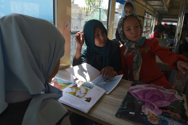 "I come to the bus once a week to read books," 13-year-old Zahra told AFP.
