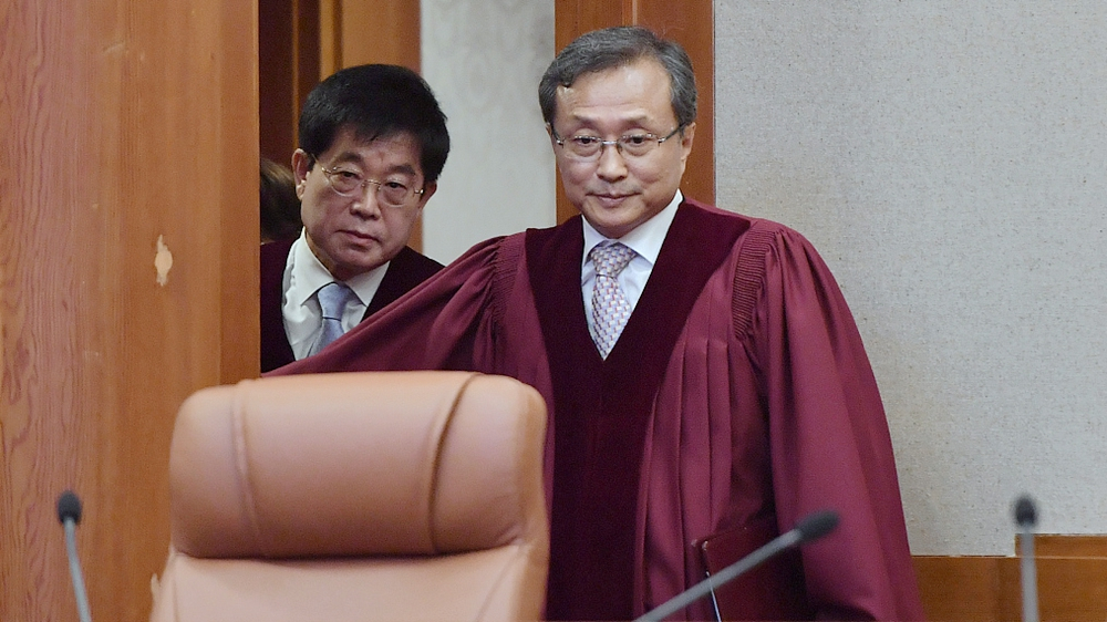 South Korea's Constitutional Court chief judge Yoo Nam-seok arrives for the ruling on decriminalization of abortion at the court in Seoul, April 11, 2019. /VCG Photo