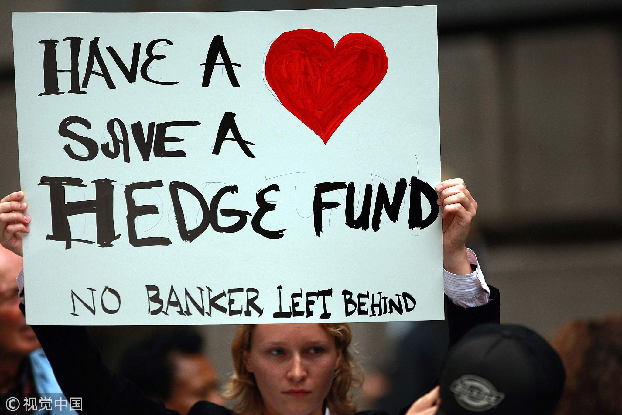 Protest against the proposed government buyout of financial firms September 25, 2008, in New York City. /VCG Photo.