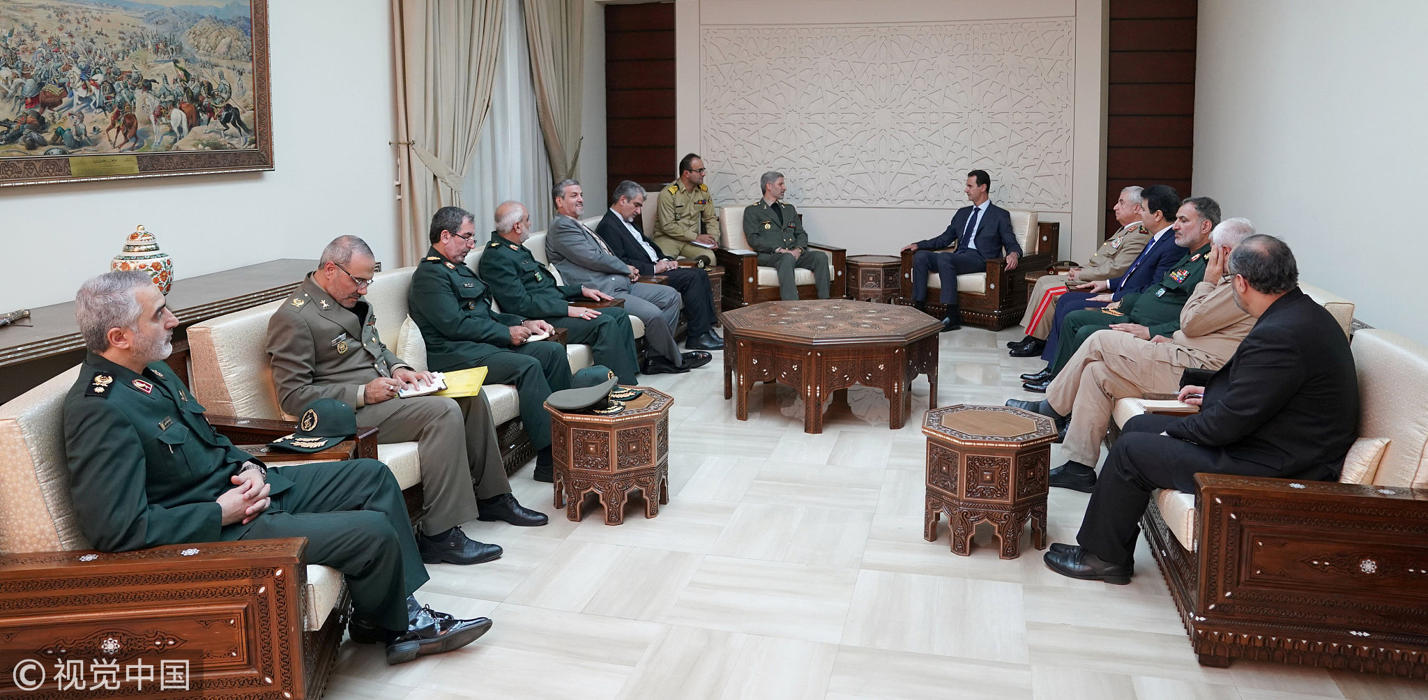 Syrian President Bashar al-Assad meets with Iranian Defense Minister Amir Hatami in Damascus, Syria in this handout picture provided by Syrian Arab News Agency on August 26, 2018. /VCG Photo