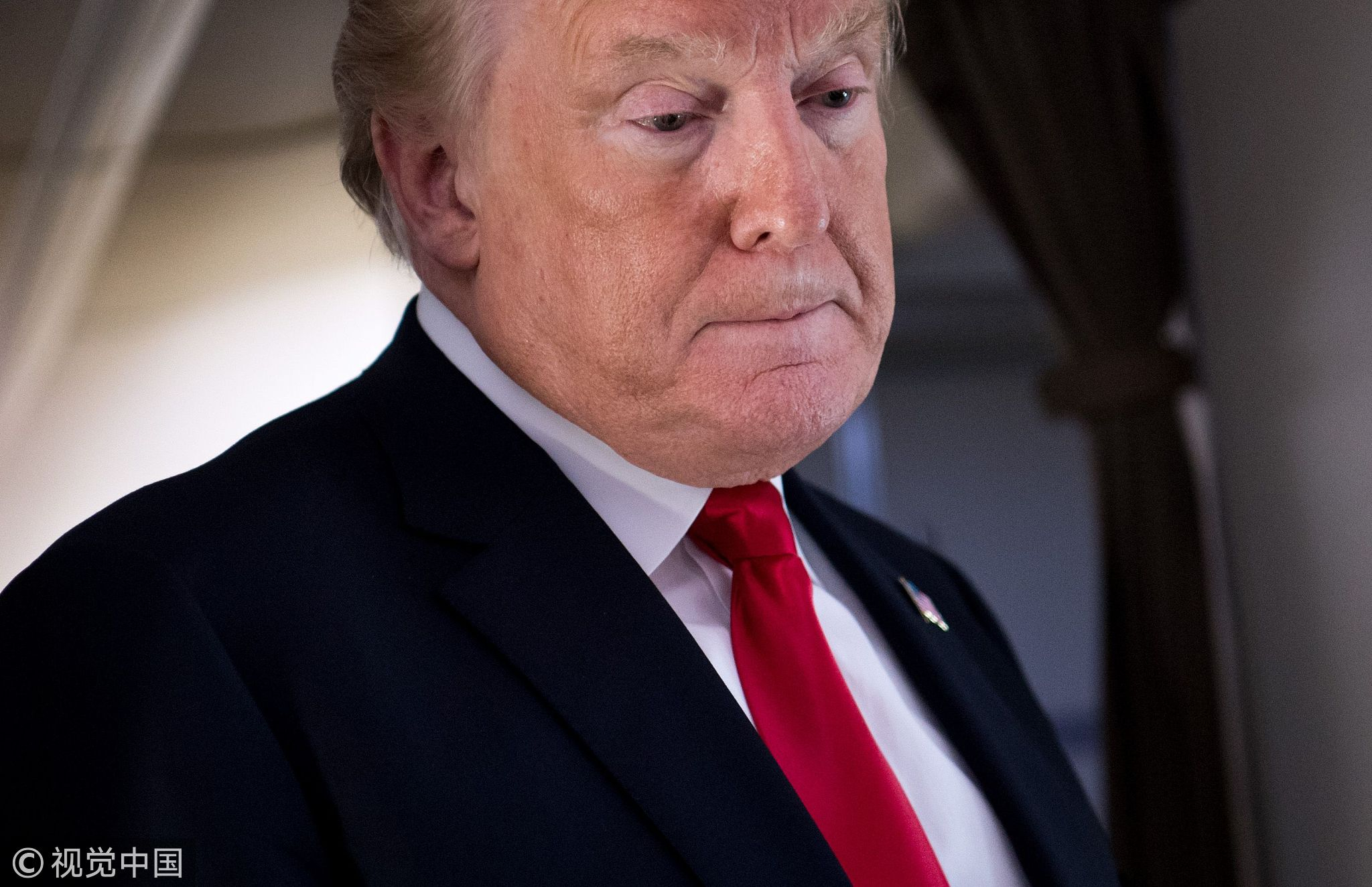 June 29, 2018: US President Donald Trump speaks to the press aboard Air Force One in flight as he travels from Joint Base Andrews in Maryland to Bedminster, New Jersey./ VCG Photo