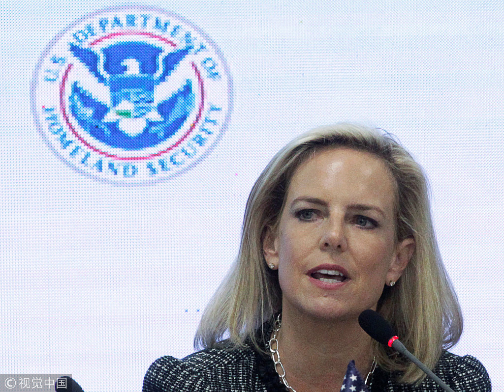 U.S. Secretary of Homeland Security Kirstjen Nielsen speaks during a multilateral meeting in Tegucigalpa, Honduras, March 27, 2019. /VCG Photo