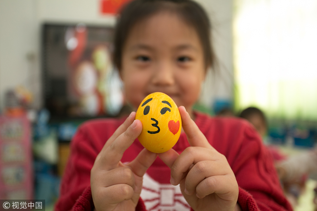 Children at a kindergarten in Beijing on Wednesday painted on eggs and tried to make eggs stand to celebrate the Chinese traditional calendar date of "Chunfen" or spring equinox. /VCG Photo