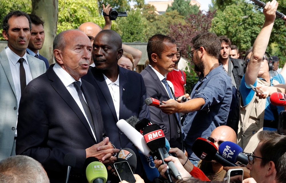 French Interior Minister Gerard Collomb speaks to reporters near the scene in Trappes, France, August 23, 2018. /VCG Photo