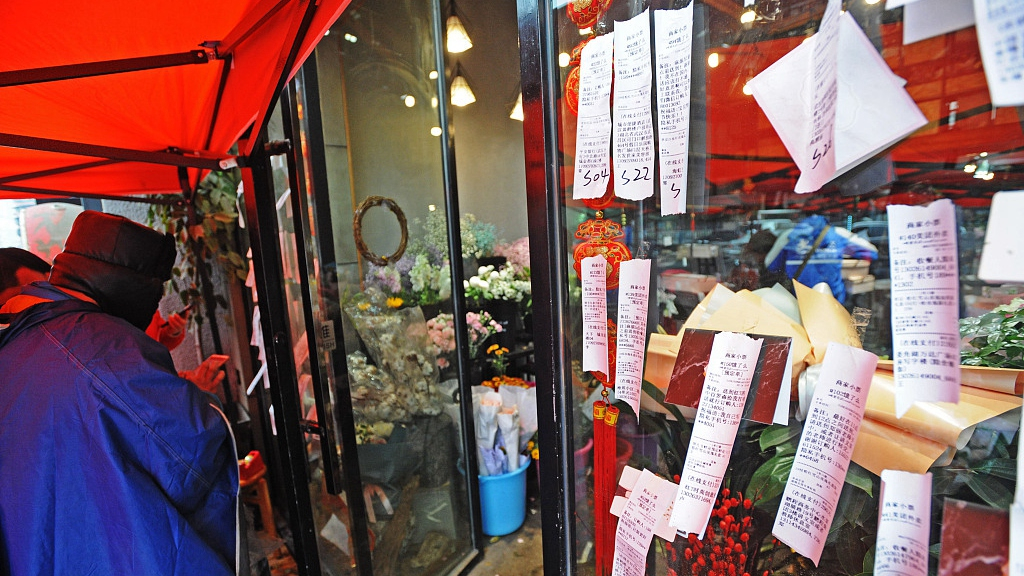 Valentine's Day orders peaked for a flower retailer in Wuhan City, central China's Hubei Province on February 14 as flower sales blossomed. /VCG Photo