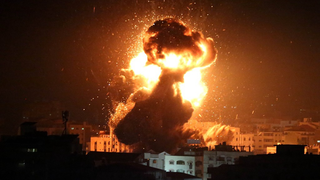 (Cover image: Smoke and flames rise from Head of the Political Bureau of Hamas, Ismail Haniyeh's office in western Gaza after Israeli warplanes carry out a fresh wave of airstrikes, March 25, 2019./ VCG Photo)