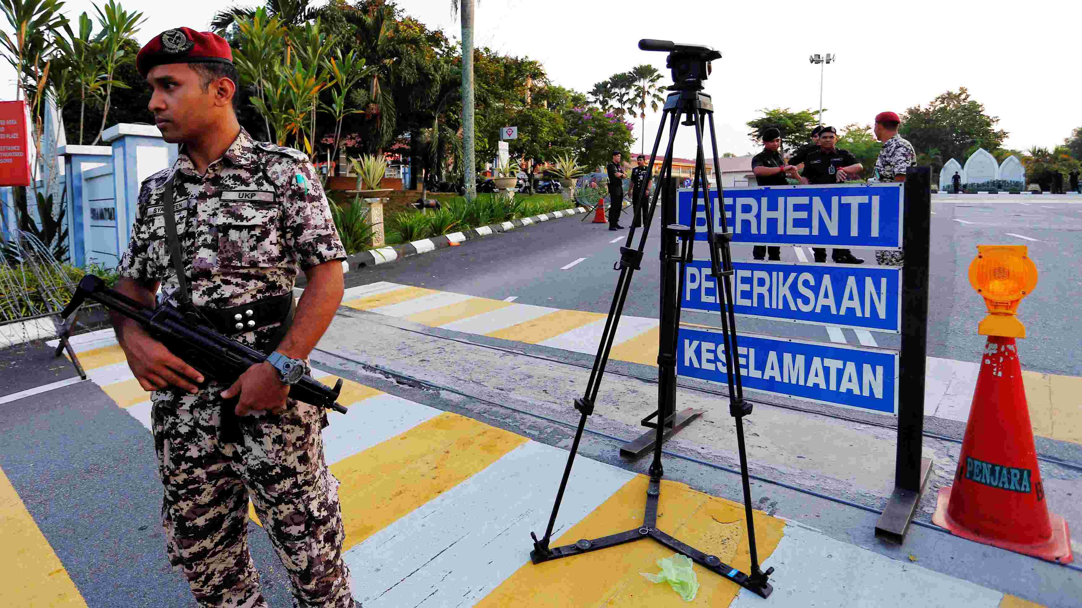 A prision security officer stands guard as members of the media await the release of Vietnamese Doan Thi Huong from a prison in Kajang, Malaysia, May 3, 2019. /Reuters Photo