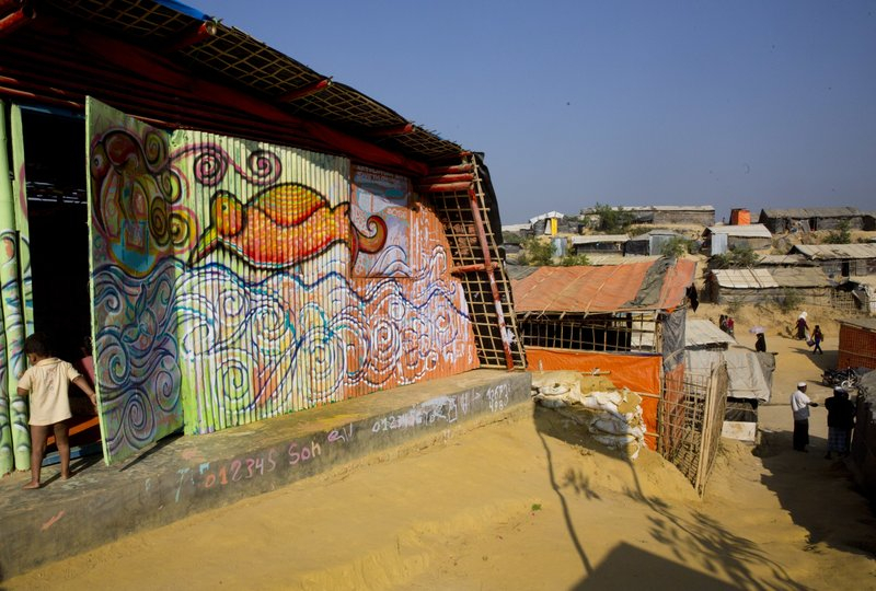 Amid the sea of makeshift bamboo-and-tarp shelters dotting the rolling hills of Kutupalong, some huts are now painted over with colorful murals. Each mural is a collection of stories from the lives of Rohingya refugees and their hopes for the future.