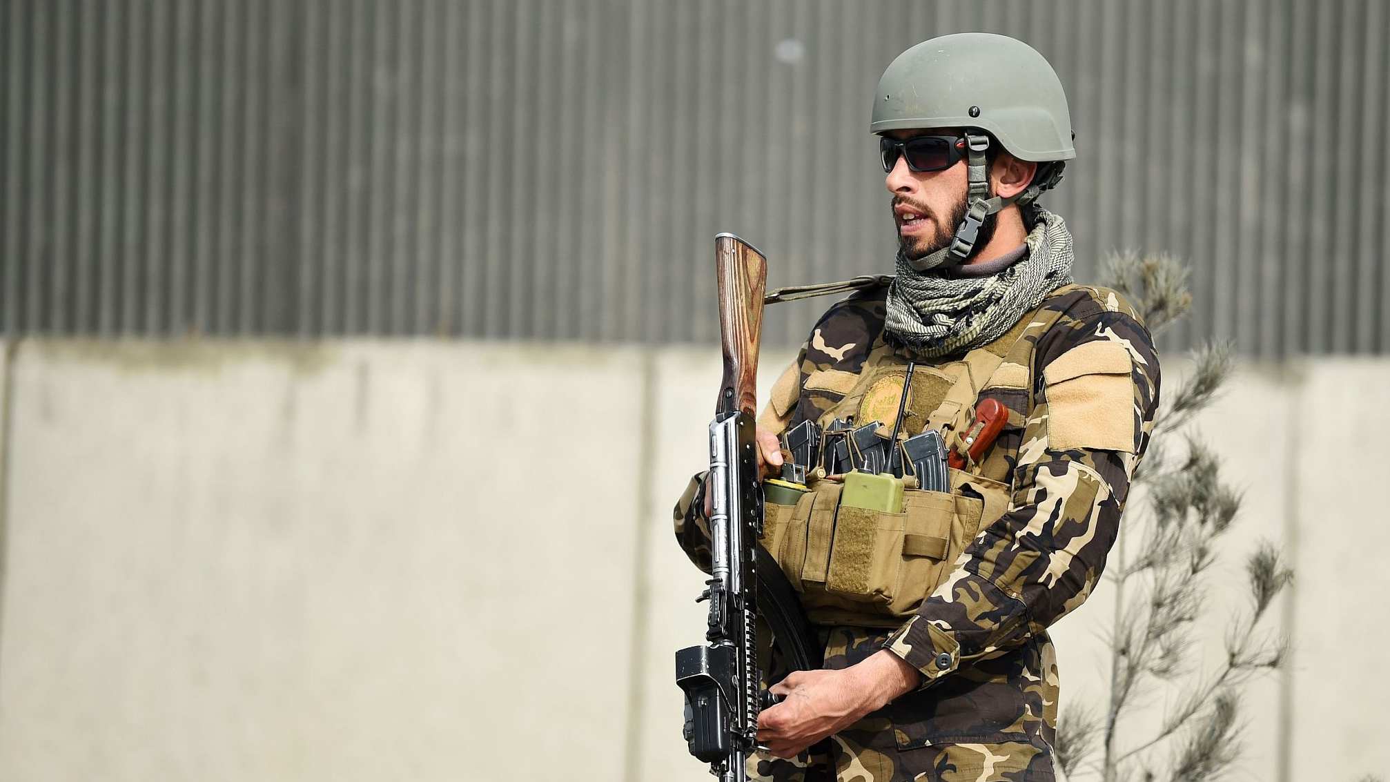 (Top image: File photo of an Afghan security member near the site of a car bomb attack targeting foreign forces in Kabul, on March 2, 2018. /VCG Photo)