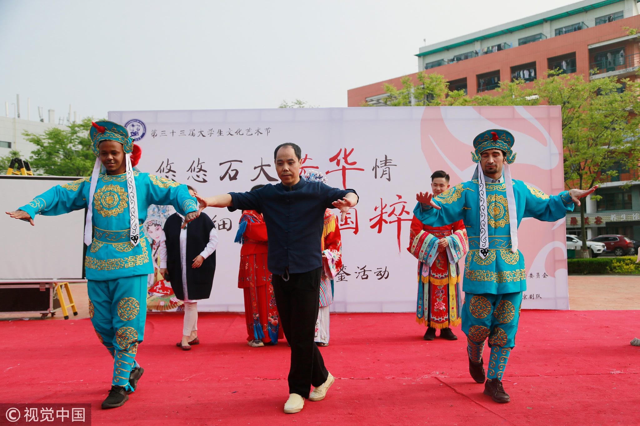 May 13, 2017: Overseas students learn Peking Opera in China University of Petroleum in Qingdao, Shandong Province. /VCG Photo