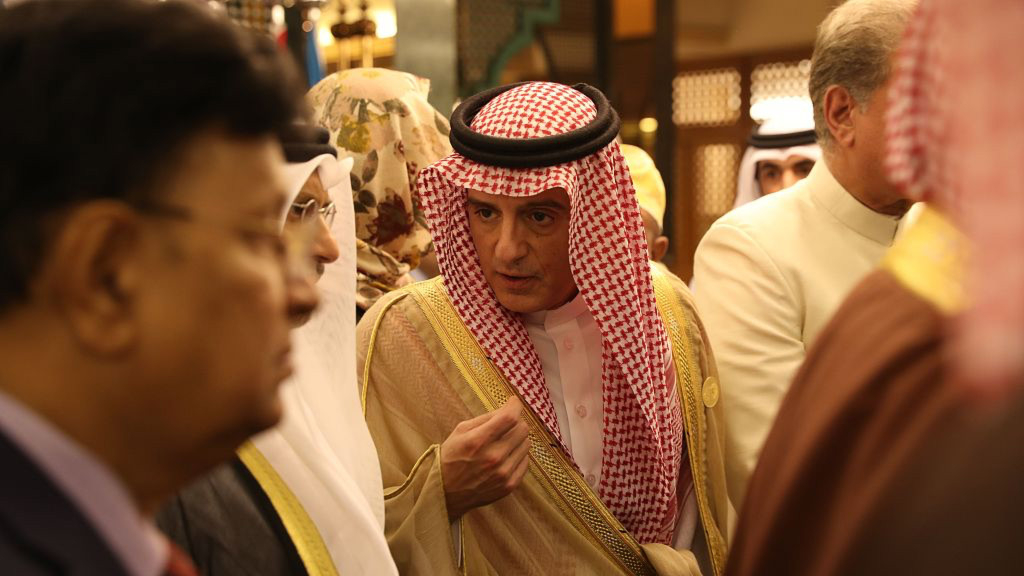 Iranian Director General of the Department of International Peace and Security Affairs Reza Najafi (R) and Pakistani Foreign Minister Shah Mehmood Qureshi (C) look on during a meeting of Islamic and Arab Foreign Ministers in Jeddah, May 30, 2019. /VCG Photo