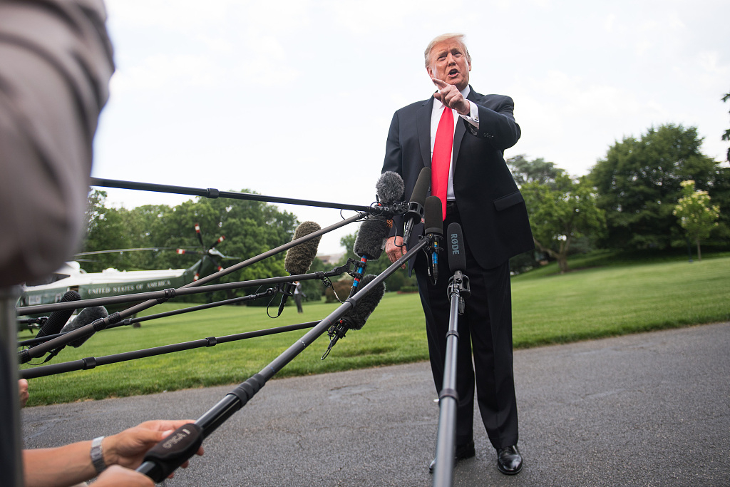 U.S. President Donald Trump speaks to journalists as he departs the White House for Pennsylvania in Washington, D.C., May 20, 2019. /VCG Photo