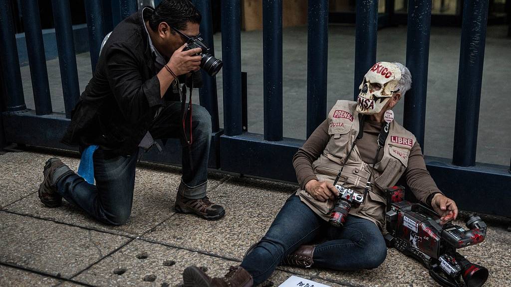 (Cover image: A journalist takes a picture of a masked woman during a protest against the murder of the correspondent Miroslava Breach of "La Jornada" newspaper, in Mexico City, March 25, 2017. / VCG Photo)