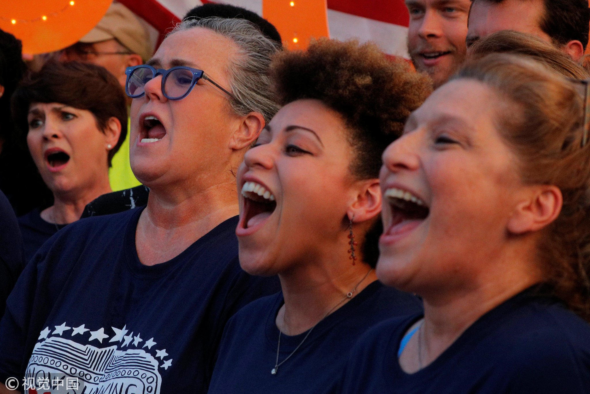 Sing-along protest in front of the White House in Washington, US, August 6, 2018. /VCG Photo