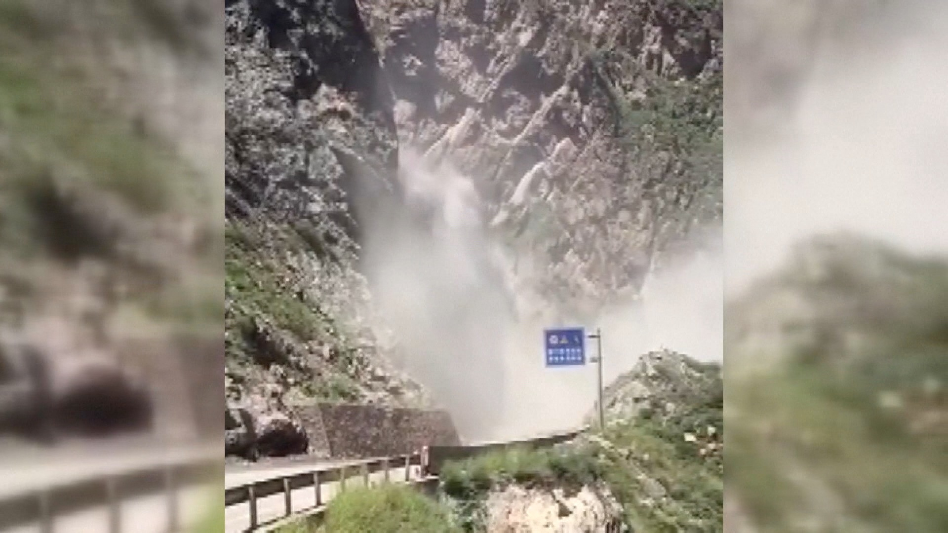 Continuous rainfall caused landslide in Hualong Hui Autonomous County of northwest China's Qinghai Province on Tuesday, disrupting the local traffic.