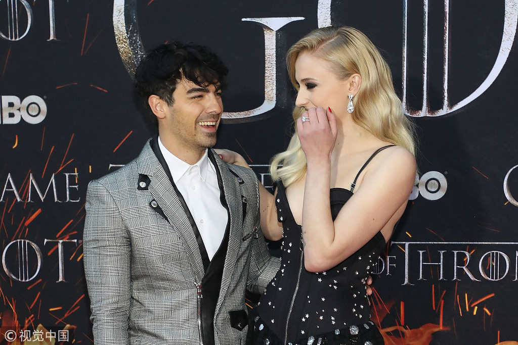 Joe Jonas and Sophie Turner attend the Season 8 premiere of "Game of Thrones" at Radio City Music Hall in New York, U.S., April 3, 2019. /VCG Photo
