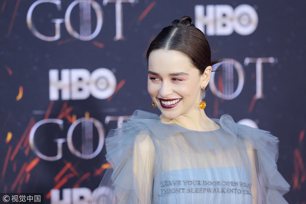 Emilia Clarke at the premiere of the final season of "Game of Thrones" at Radio City Music Hall in New York, U.S., April 3, 2019. /VCG Photo