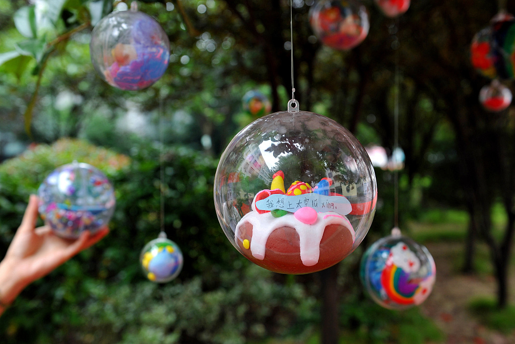 Students placed their wishes inside the balls and decorated with paintings and stickers. /VCG Photo