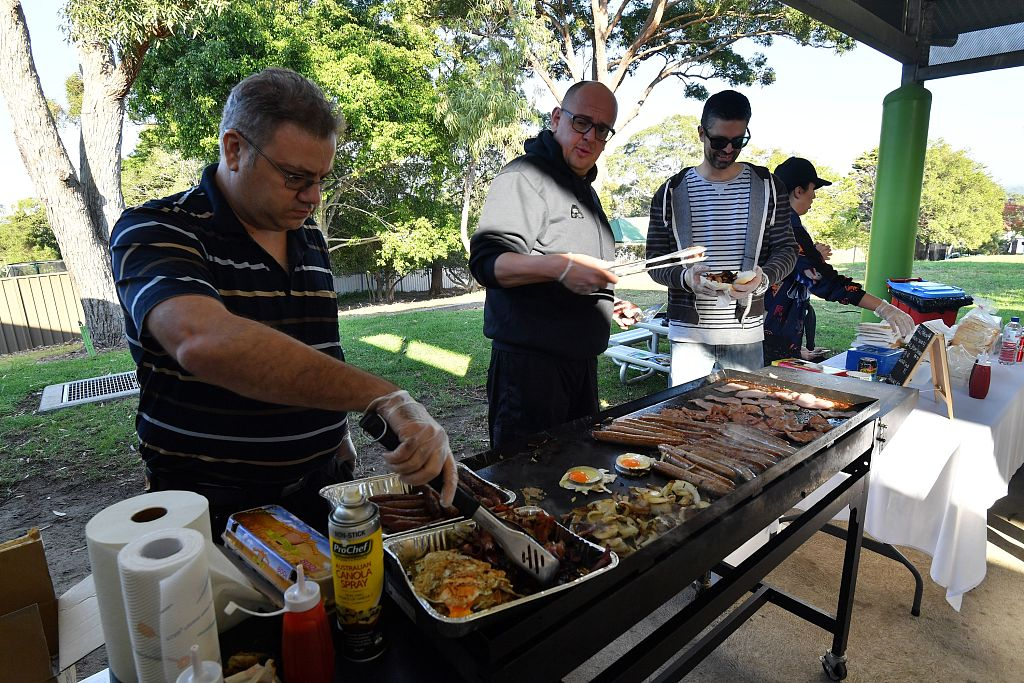 Volunteers prepare traditional sausage sizzle for voters at a polling station in Sydney, NSW, Australia, May 18, 2019. /VCG Photo