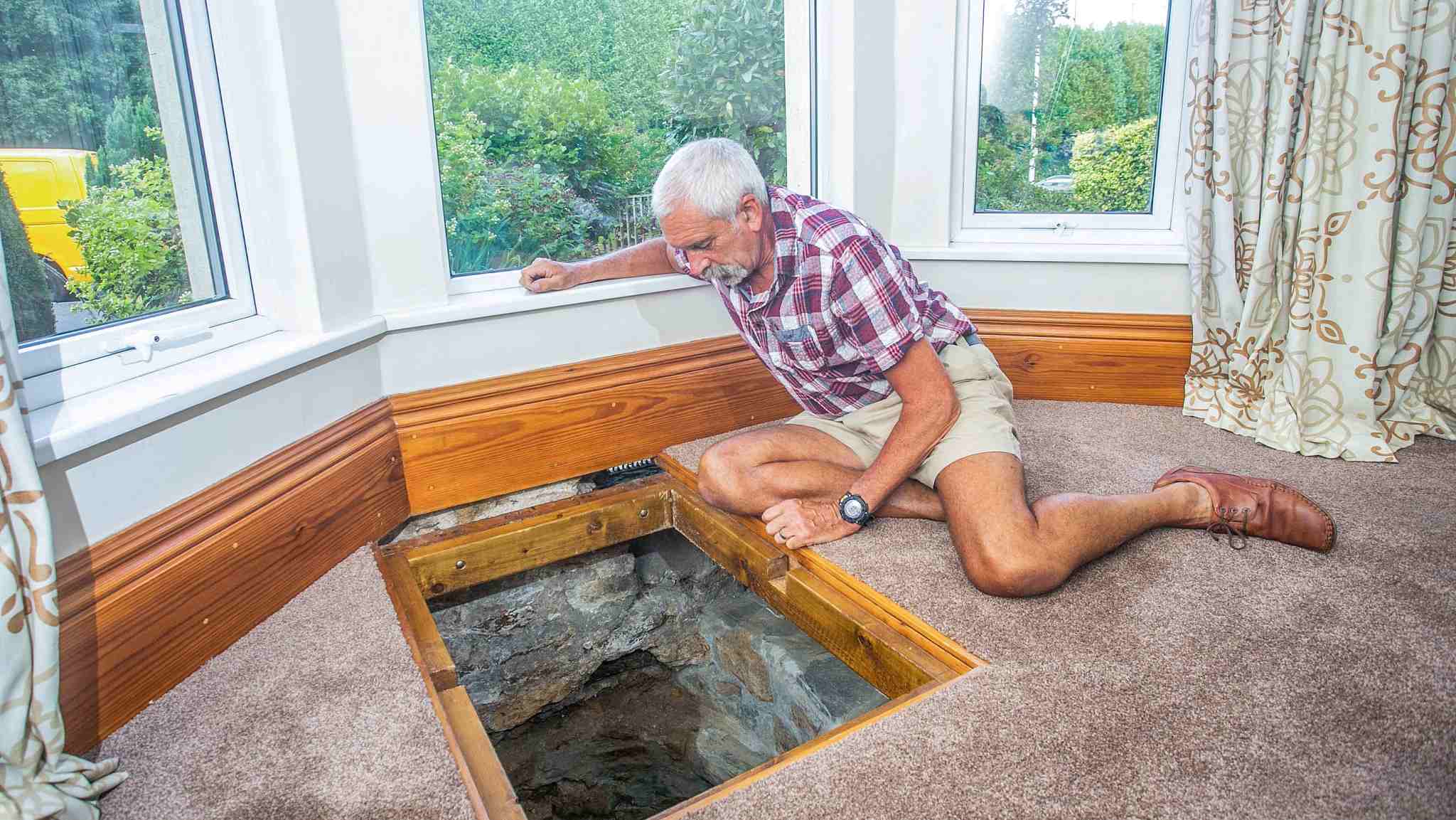 A couple in Devon, England who discovered a deep well under their sofa 30 years ago, finally hit water after they started digging seven years ago. /VCG Photo
