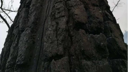 The tree which was believed to be hit by lightning had caused a devastating forest fire in SW China's Sichuan Province on March 30. / CCTV photo