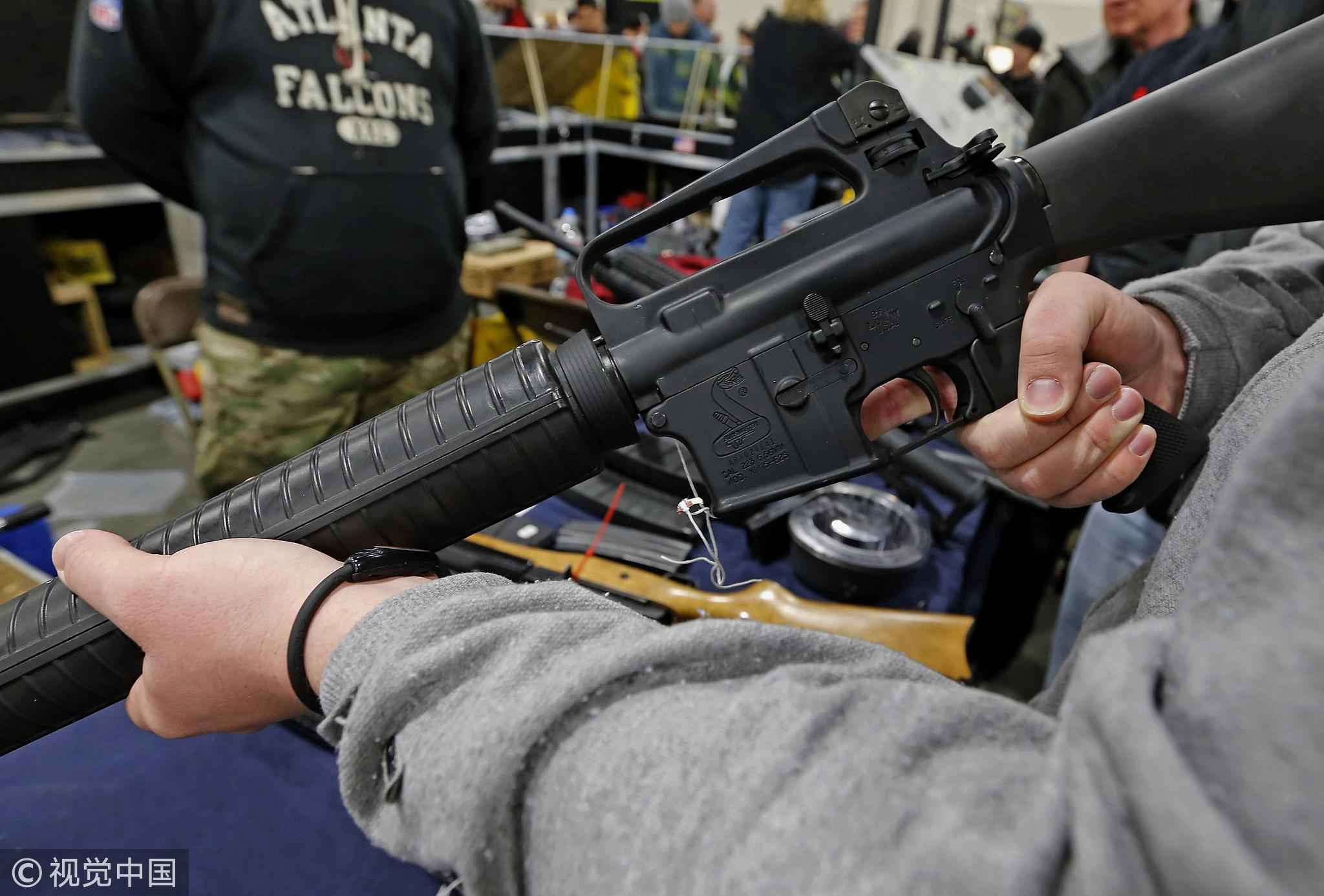 Jan. 5, 2013; A man holds a Bushmaster AR-15 Model A2 semi-automatic assault rifle at the Rocky Mountain Gun Show in Sandy, Utah, US. /VCG Photo