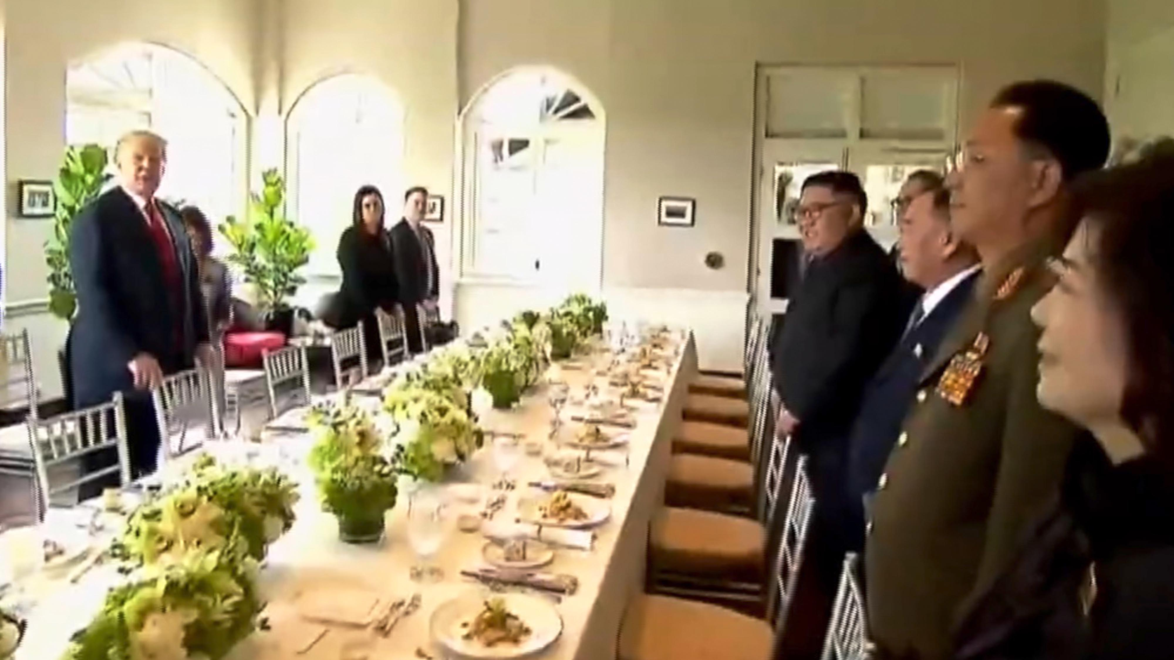 US President Donald Trump and DPRK leader Kim Jong Un head for a working lunch following the expanded bilateral talks during Tuesday's historic summit at the Capella Hotel on Singapore’s Sentosa island.
