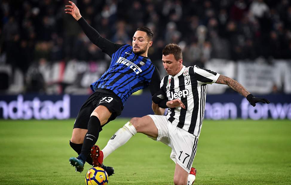 Mario Mandzukic (R) of Juventus and Danilo D'Ambrosio of Inter compete for the ball during their Serie A clash, December 9, 2017. /VCG Photo