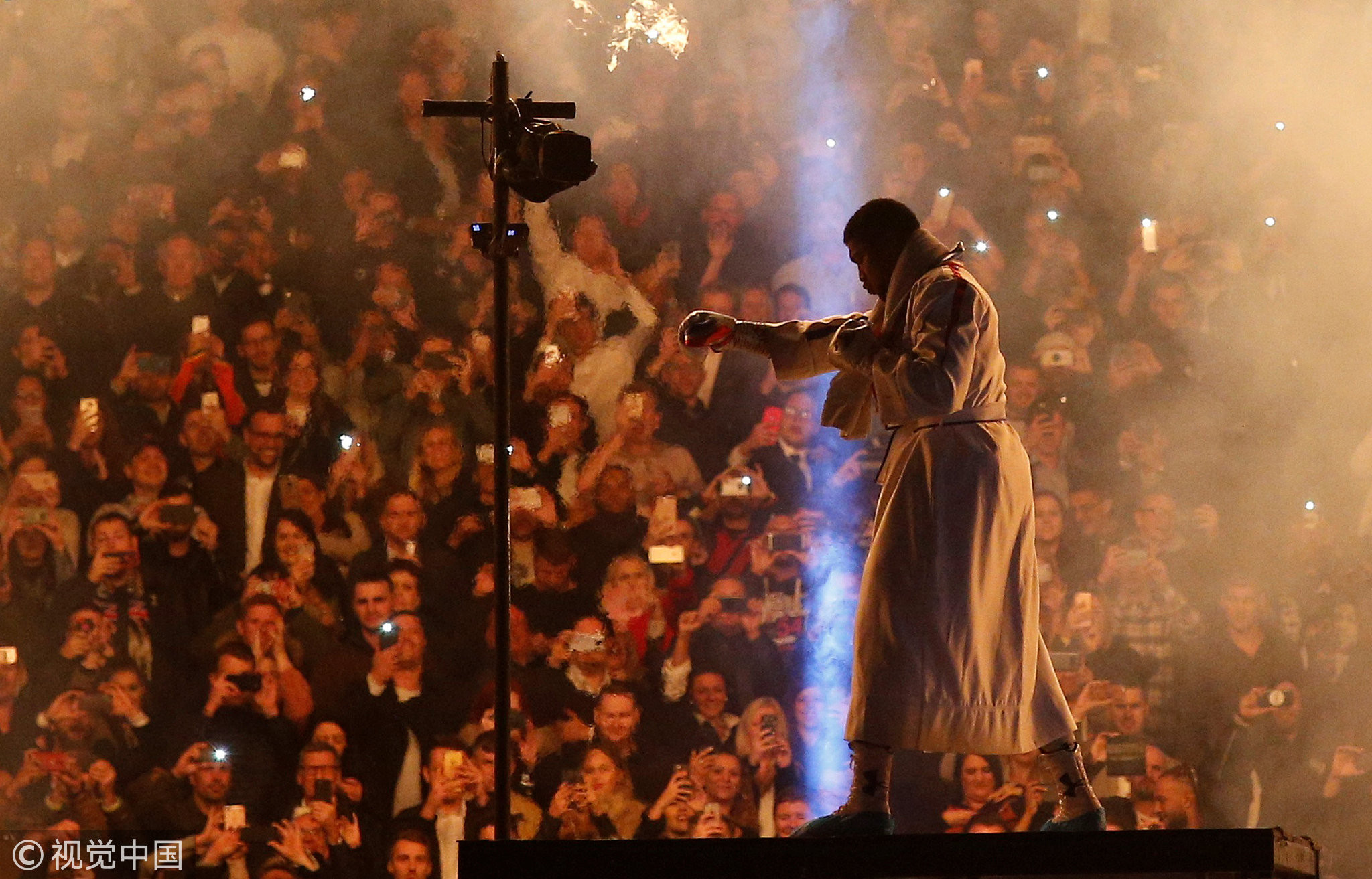 Anthony Joshua comes on stage before the match of Anthony Joshua vs Alexander Povetkin for WBA Super, IBF, WBO & IBO World Heavyweight Titles at Wembley Stadium, London, Britain, September 22, 2018. /VCG Photo