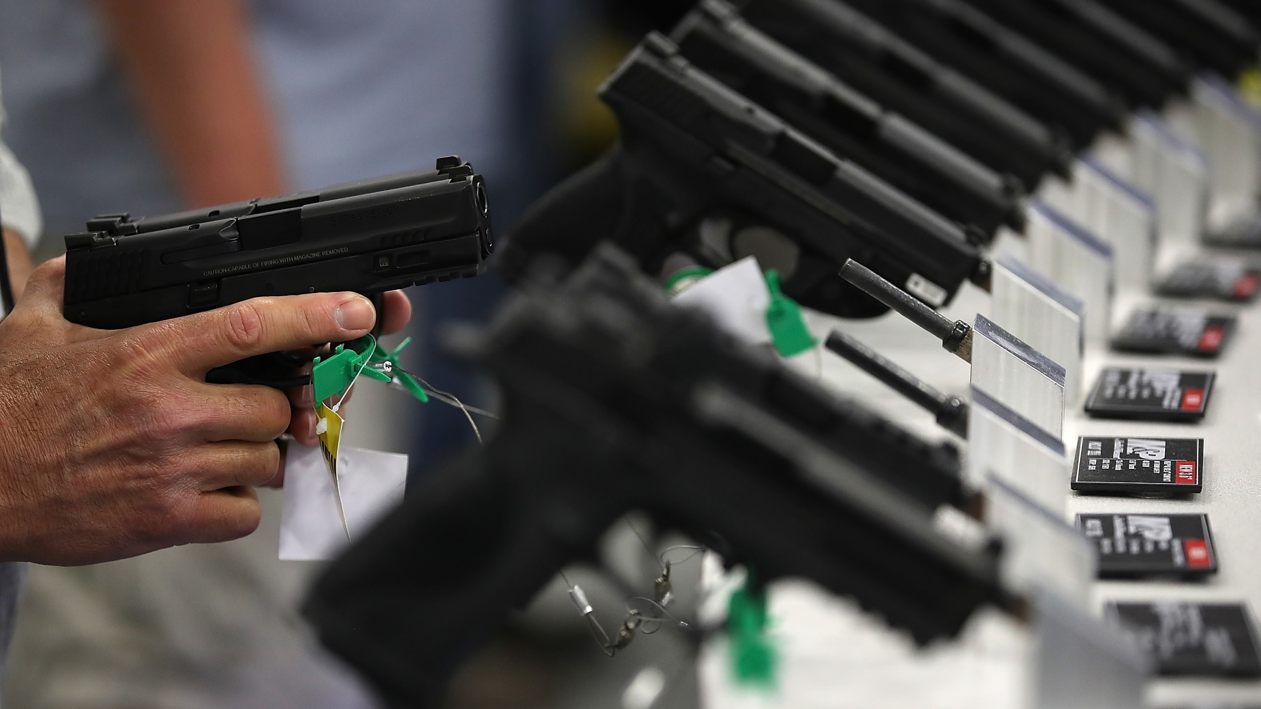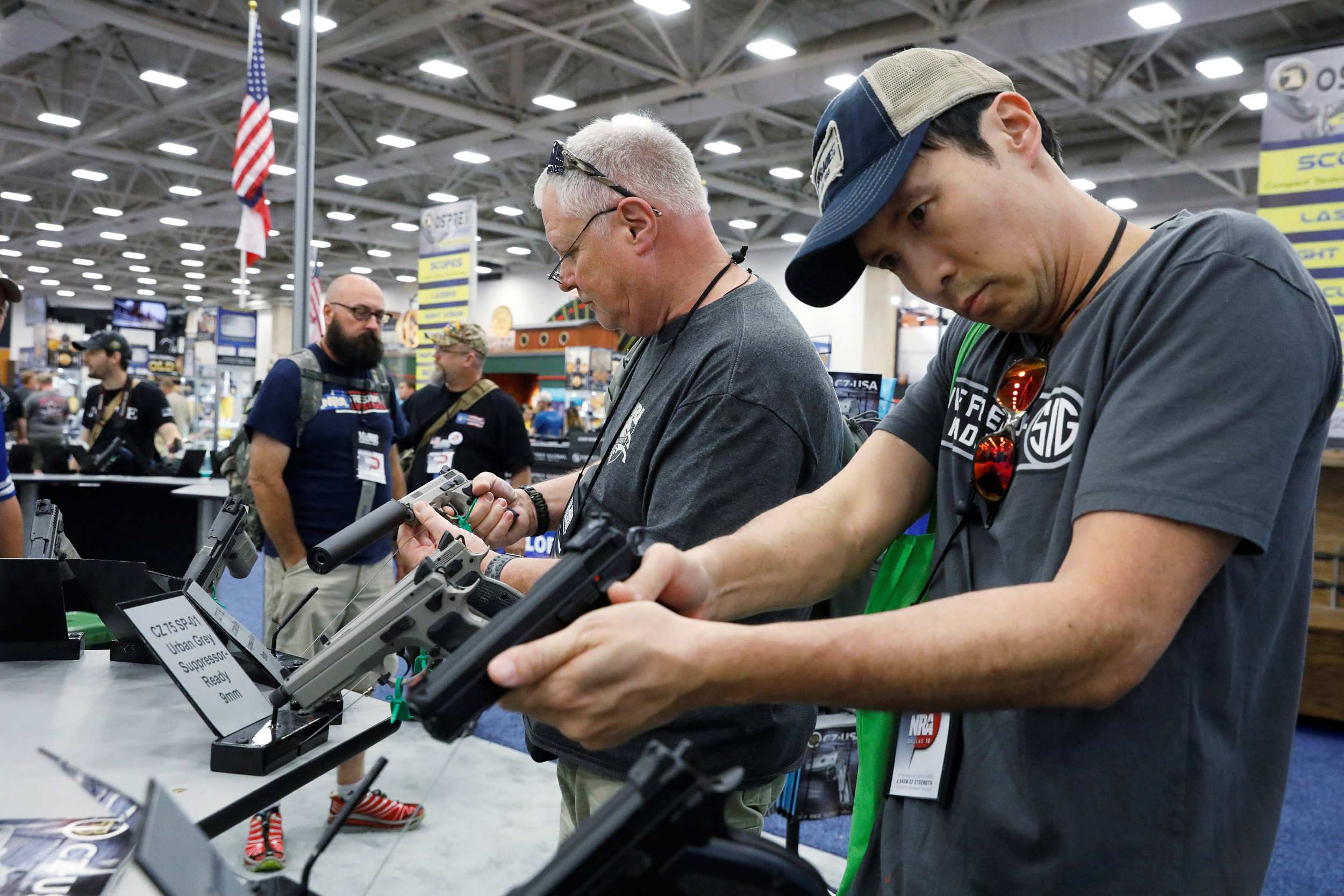 Gun enthusiasts inspect firearms during the annual National Rifle Association (NRA) convention in Dallas, Texas, US, on May 5, 2018. /VCG Photo