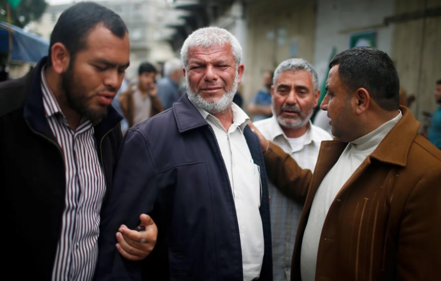 Relatives of a Palestinian electrical engineer Fadi al-Batash, who was shot to death in Malaysia, mourn outside his family house in the northern Gaza Strip, April 21, 2018. /Reuters Photo