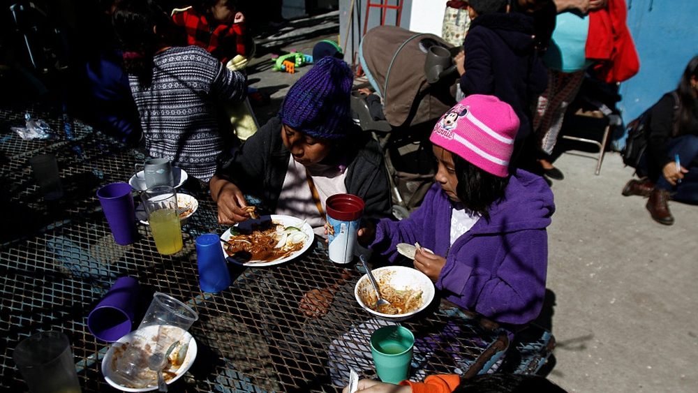 Central American migrants waiting in Mexico while their asylum request is processed, eat at a shelter in Tijuana, February 19, 2019. /VCG Photo