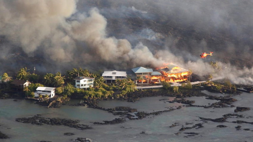 Lava destroys homes in the Kapoho area, east of Pahoa, during ongoing eruptions of the Kilauea Volcano in Hawaii, June 5, 2018. /Reuters Photo